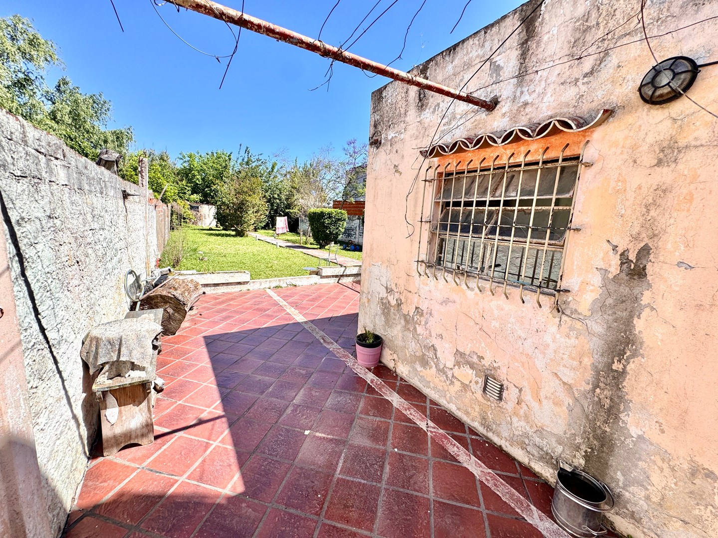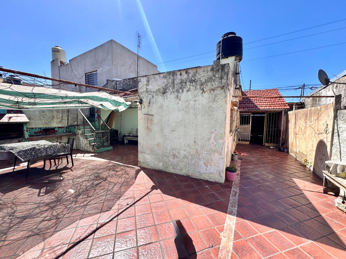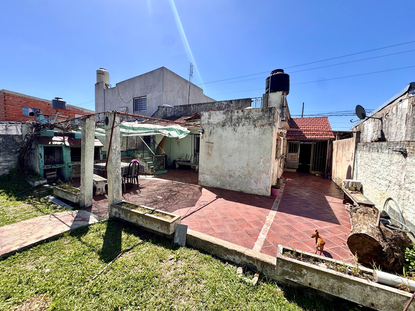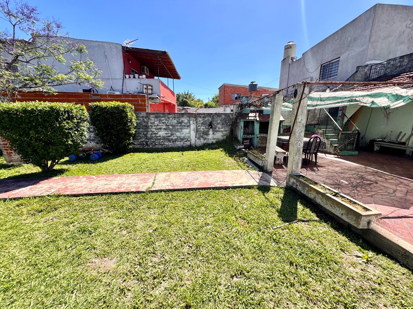Casa tipo americana con amplio lote en Lomas de Zamora Potosí 232, entre Homero y Euskadi – Lomas de Zamora Excelente propiedad de 3 ambientes, desarrollada sobre un lote de 10 x 42 m (420 m²), con 124 m² cubiertos. La vivienda cuenta con techo de losa, y se distribuye de la siguiente manera: • Entrada de vehículos y garaje pasante para un auto. • Amplio living–cocina–comedor con pisos mosaico. • Cocina equipada con mesada, bajo mesada, alacena y artefacto de cocina eléctrica. • Dos dormitorios con pisos cerámicos. • Baño completo con ducha. • Patio con parrilla y escalera de acceso a terraza. • Amplio fondo libre parquizado, con galponcito al fondo. Observaciones: No posee servicio de gas natural. Medidas: • Lote: 10 m x 42 m (420 m²) • Superficie cubierta: 124 m²