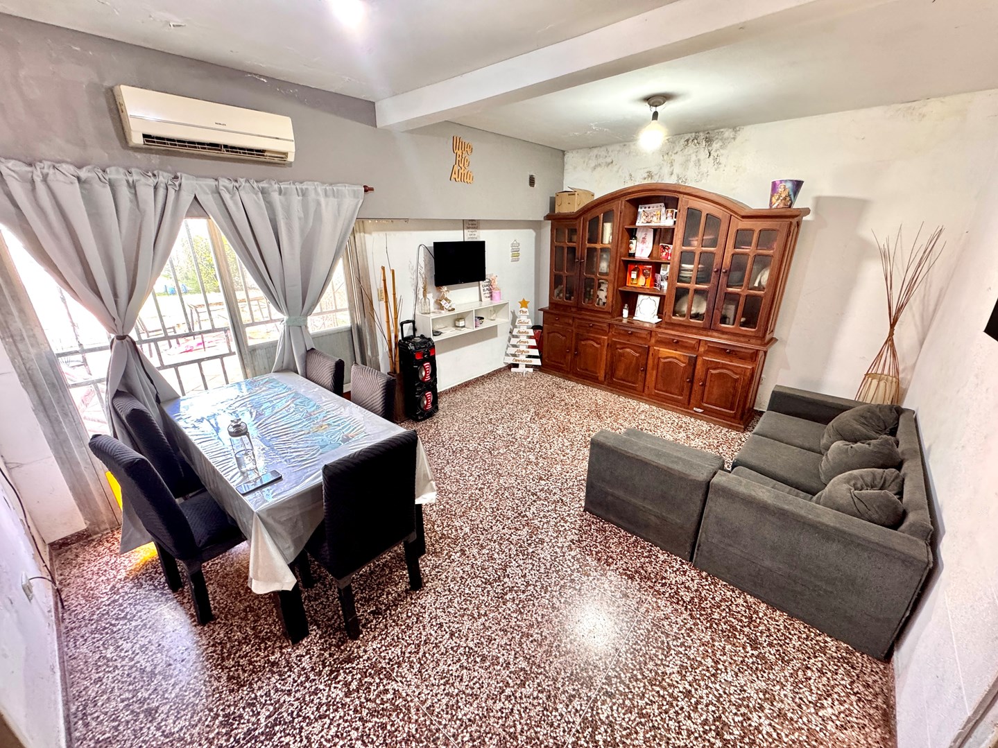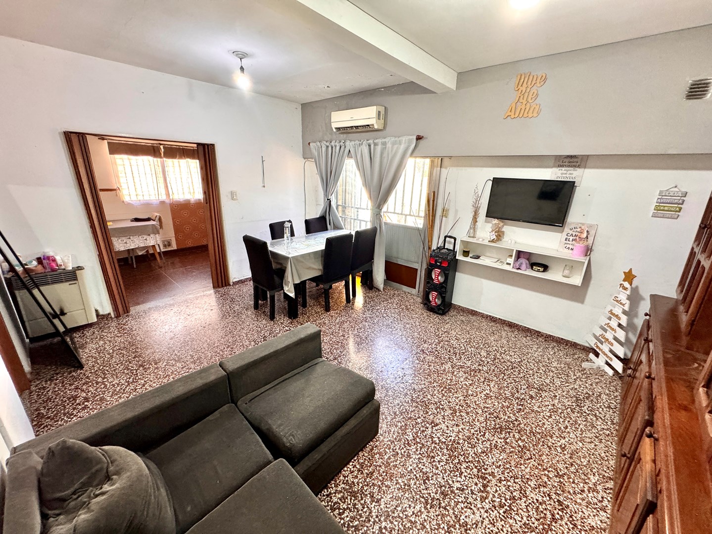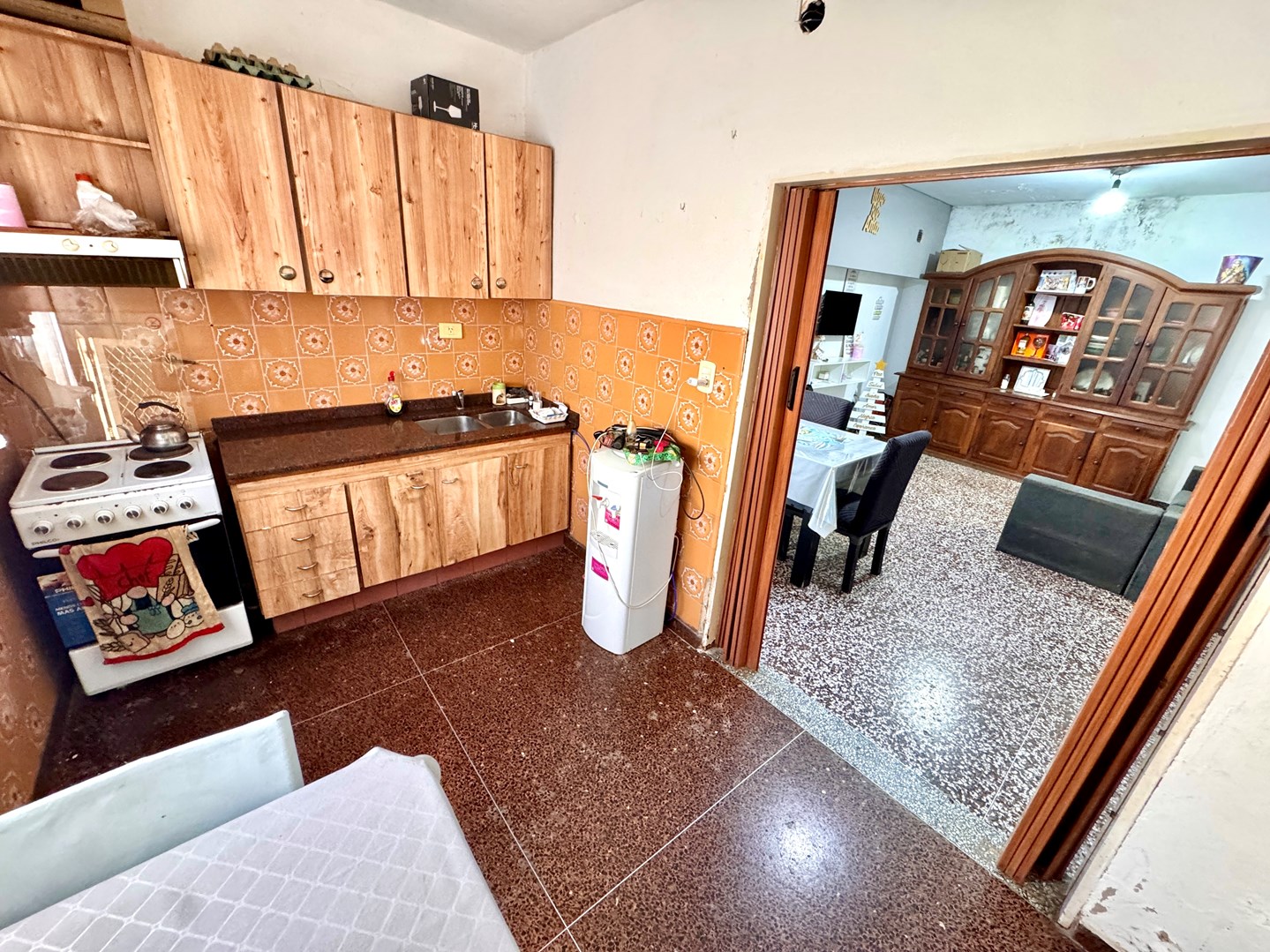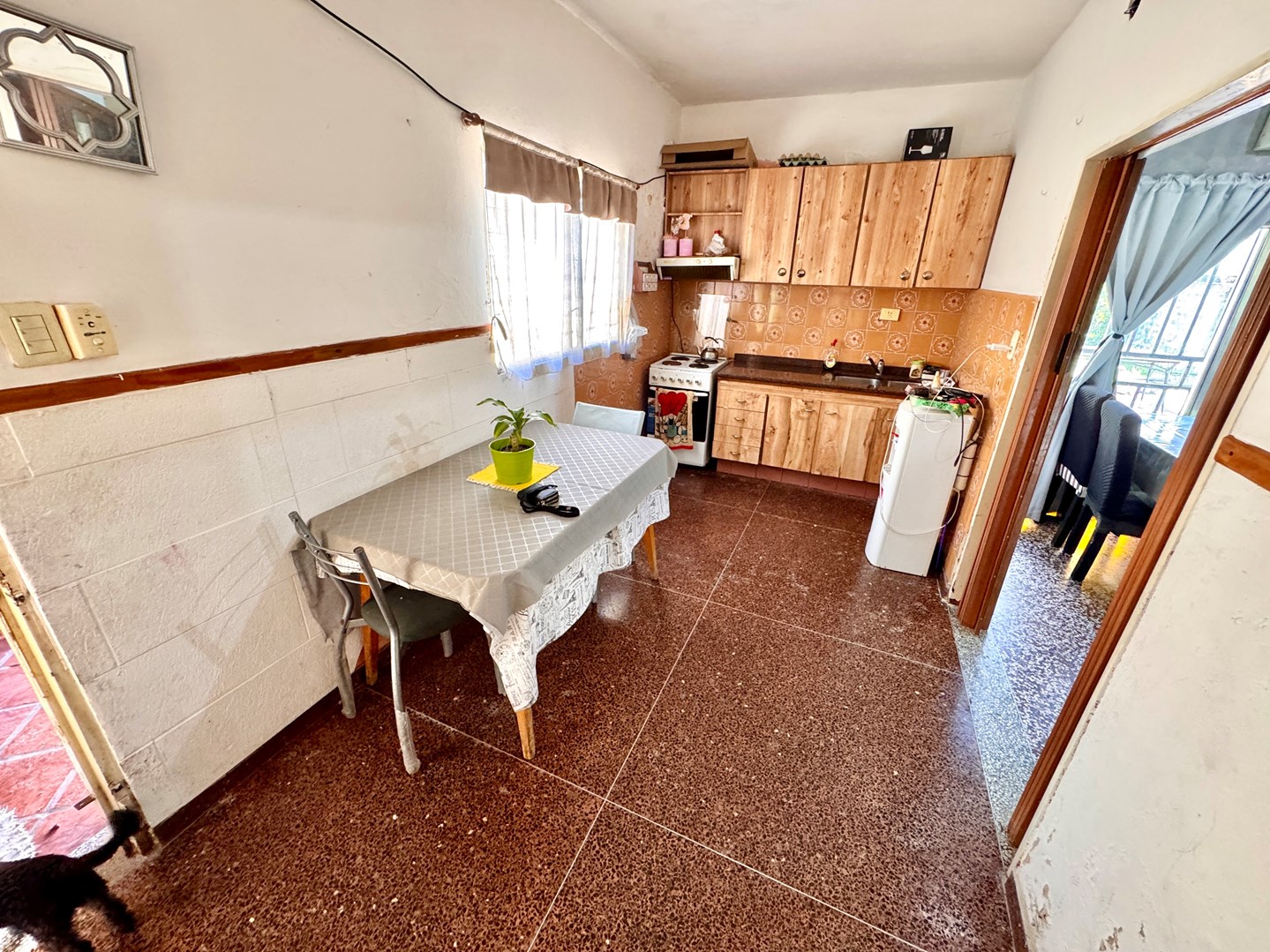 Casa tipo americana con amplio lote en Lomas de Zamora Potosí 232, entre Homero y Euskadi – Lomas de Zamora Excelente propiedad de 3 ambientes, desarrollada sobre un lote de 10 x 42 m (420 m²), con 124 m² cubiertos. La vivienda cuenta con techo de losa, y se distribuye de la siguiente manera: • Entrada de vehículos y garaje pasante para un auto. • Amplio living–cocina–comedor con pisos mosaico. • Cocina equipada con mesada, bajo mesada, alacena y artefacto de cocina eléctrica. • Dos dormitorios con pisos cerámicos. • Baño completo con ducha. • Patio con parrilla y escalera de acceso a terraza. • Amplio fondo libre parquizado, con galponcito al fondo. Observaciones: No posee servicio de gas natural. Medidas: • Lote: 10 m x 42 m (420 m²) • Superficie cubierta: 124 m²