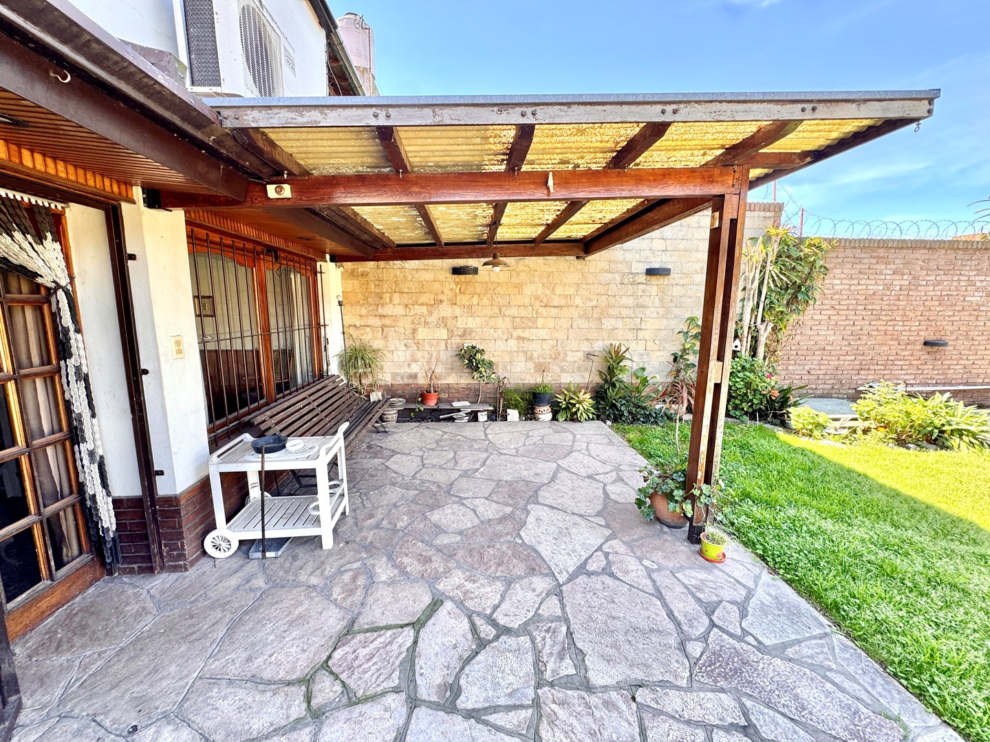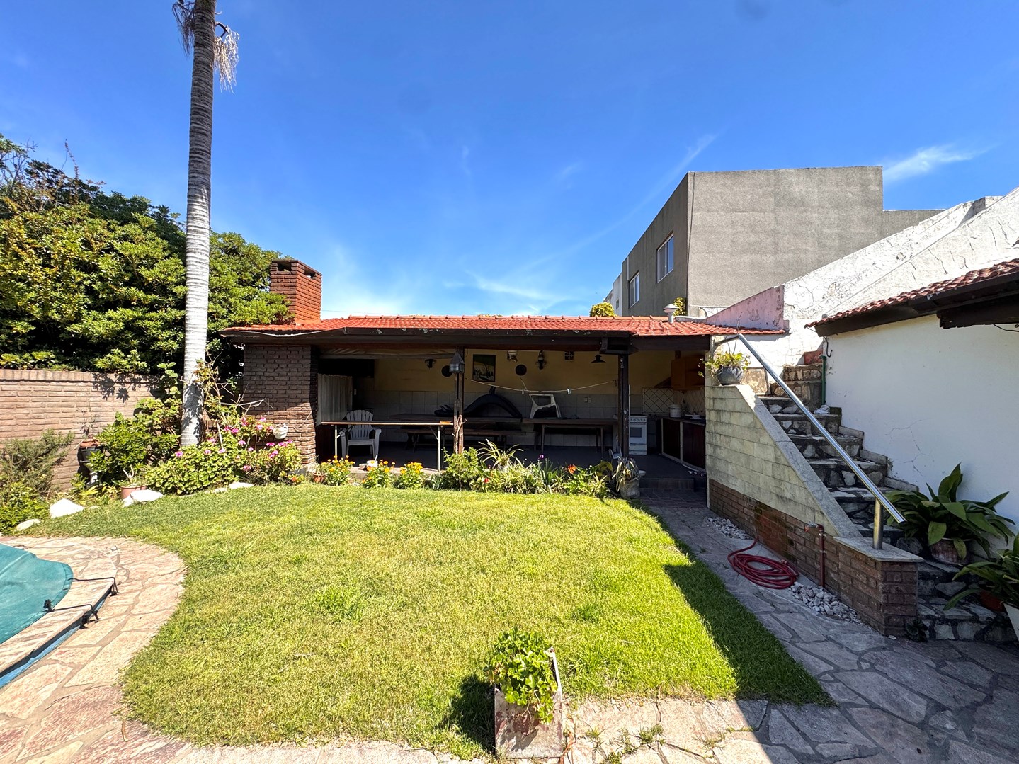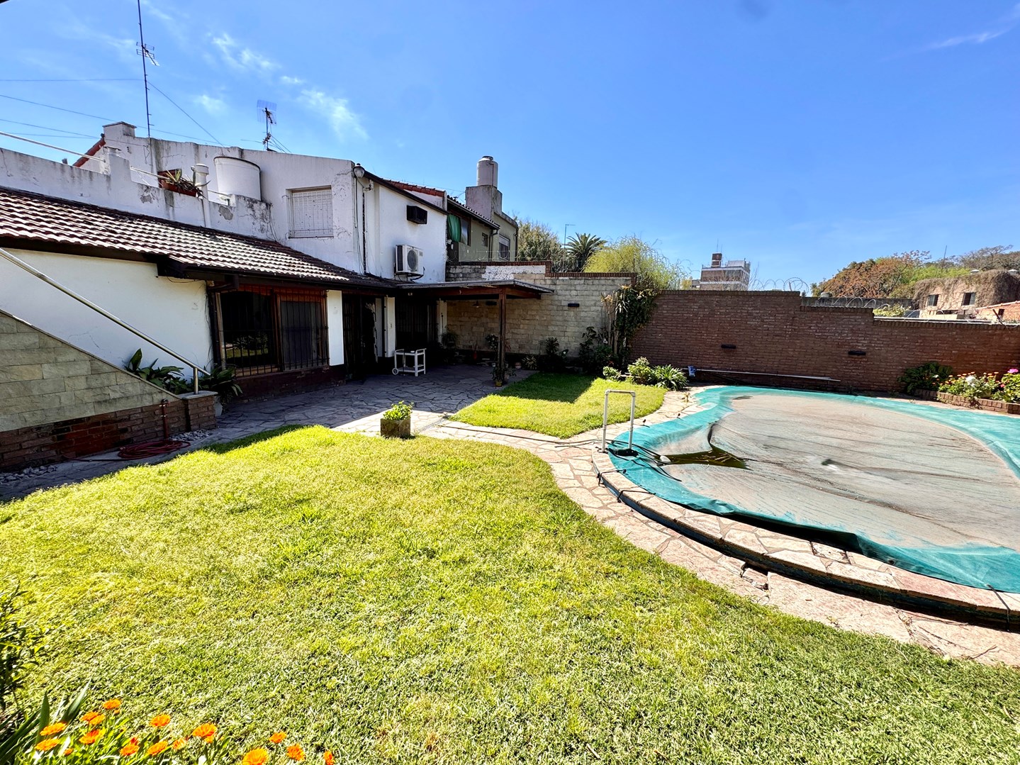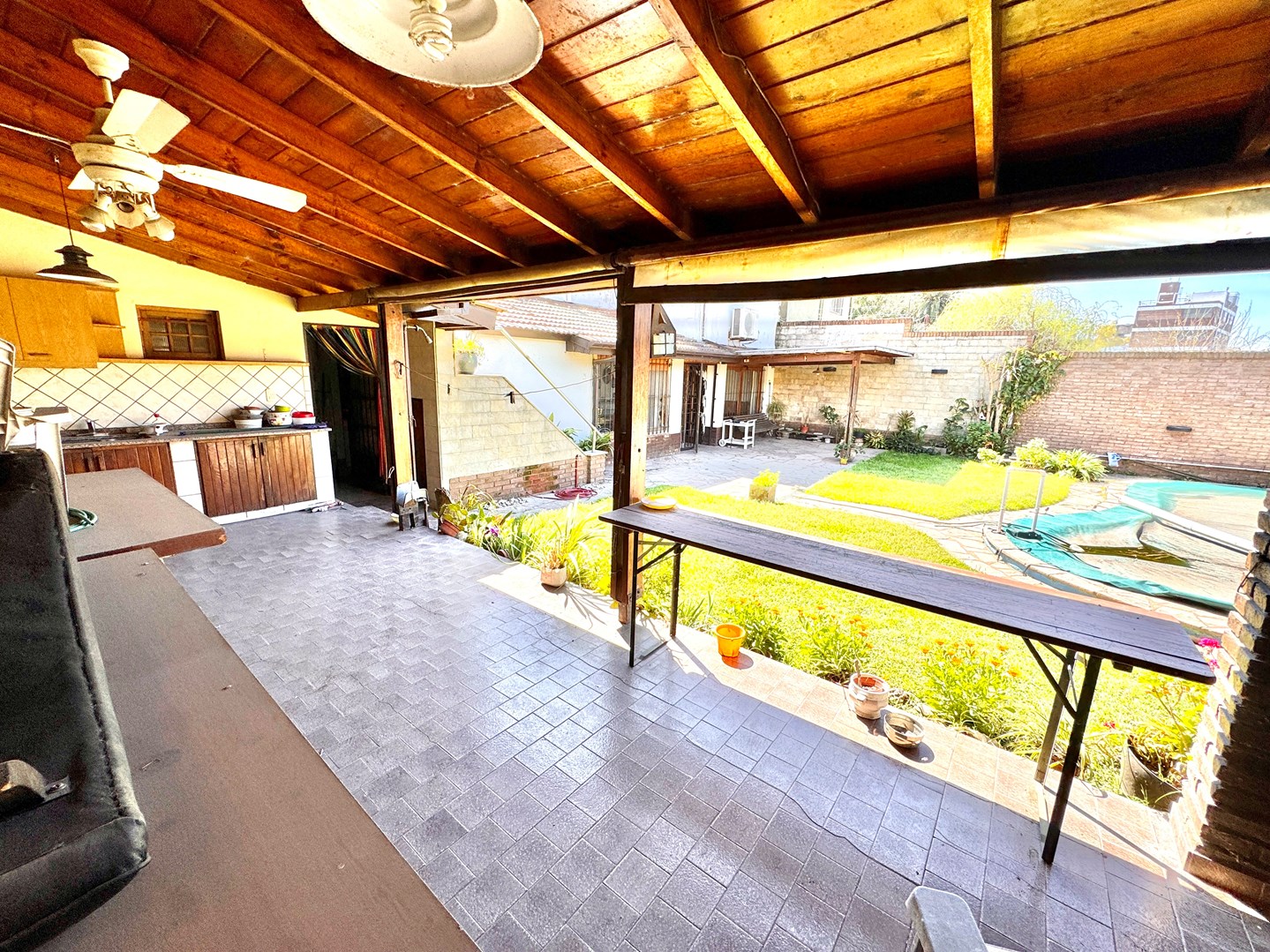 Chalet Tejas Colonial con jardín y piscina – Lomas de Zamora Los Jacarandaes 255, entre Los Robles y Los Castaños – A una cuadra del Parque Municipal de Lomas de Zamora. Encantador chalet de 5 ambientes con estilo colonial, excelente distribución y amplios espacios tanto interiores como exteriores. En planta baja: • Amplio living comedor con pisos de mosaico y hogar a gas. • Cocina comedor totalmente equipada con mesada, bajo mesada y alacena. • Segundo living o posible escritorio / dormitorio adicional. • Dos dormitorios con placard. • Baño completo con receptáculo de bañera. • Segundo baño amplio con ducha. • Lavadero cubierto. • Garaje cubierto para dos vehículos con pisos mosaico y entretecho. • Calefacción por radiadores, Caldera dual.- Exterior: • Amplio jardín parquizado con piscina tipo riñón con filtro, Climatizada. • Quincho semicubierto con parrilla, cocina con mesada, bajo mesada y alacena. • Terraza accesible. Planta alta: • Playroom / escritorio. • Dormitorio adicional con placard. Detalles: • Rejas en todas las aberturas. • Lote de 15m x 22m (sup. total 330m²). • Superficie cubierta 140m². • Zona residencial consolidada, tranquila y muy cercana a espacios verdes.