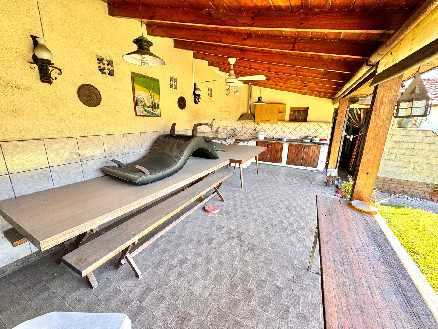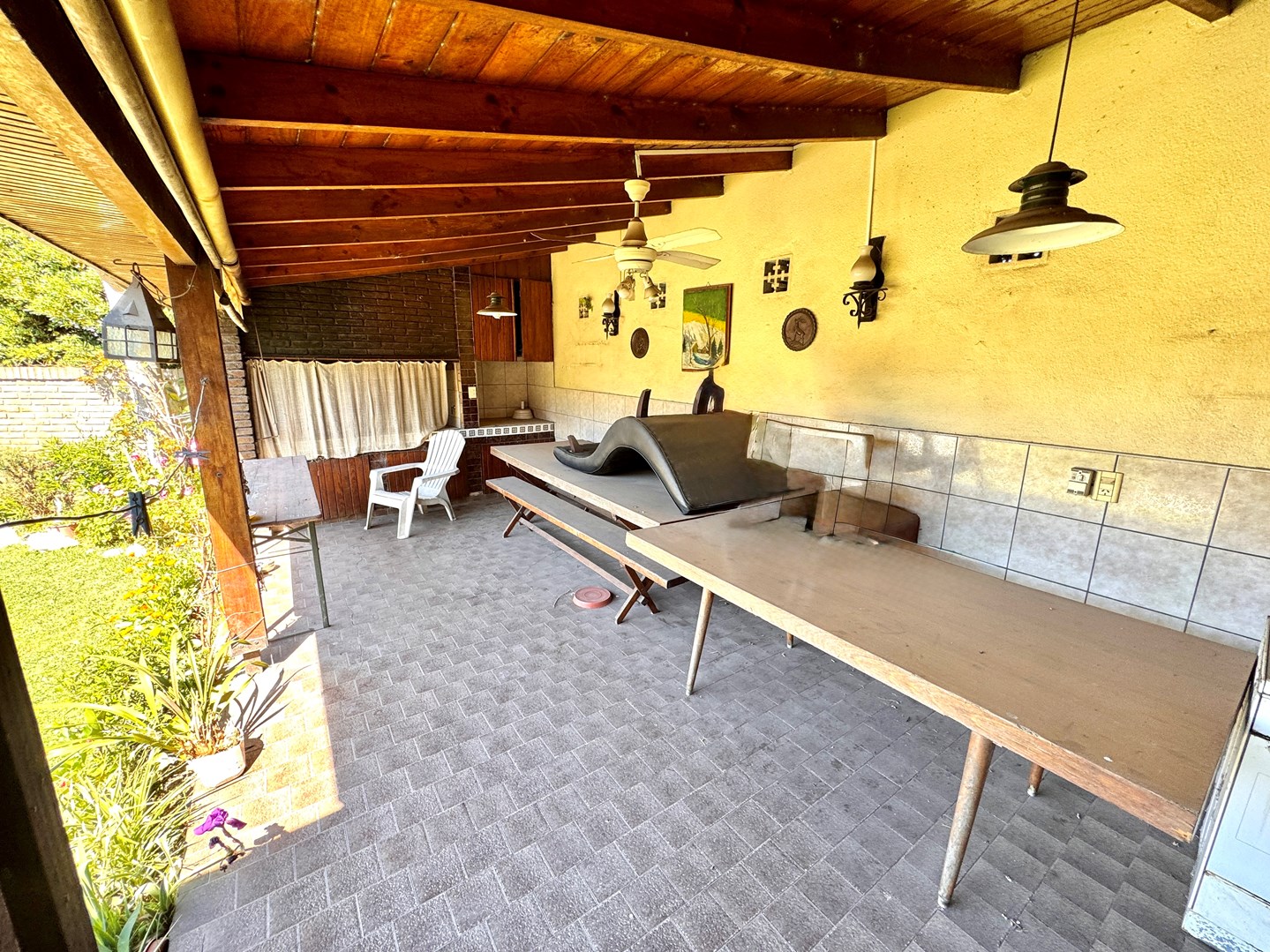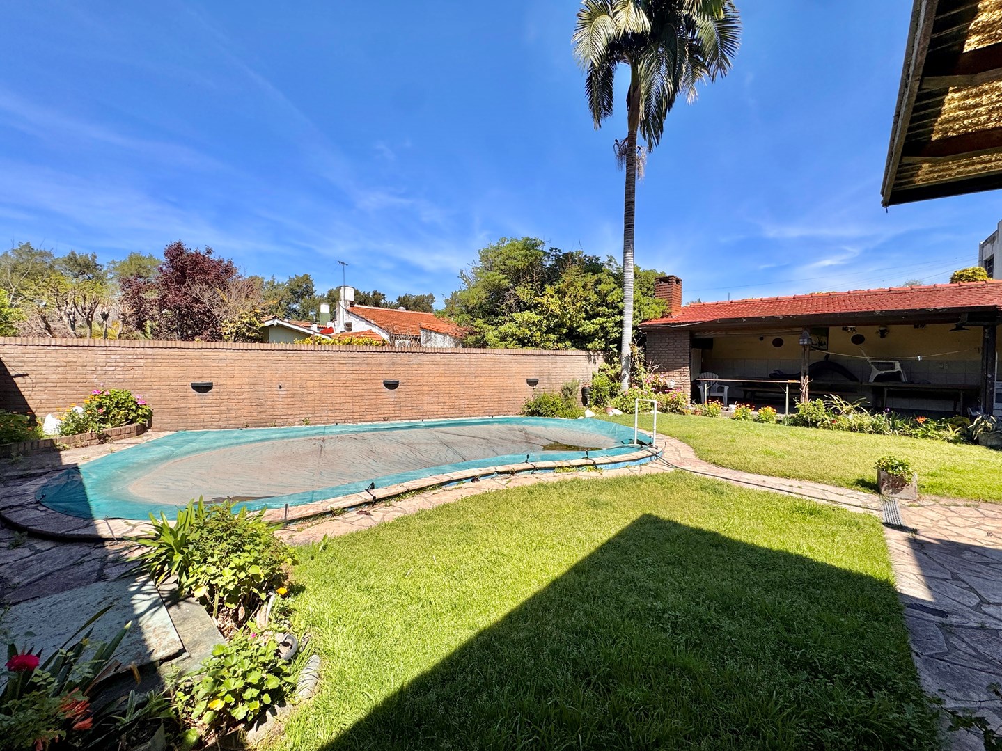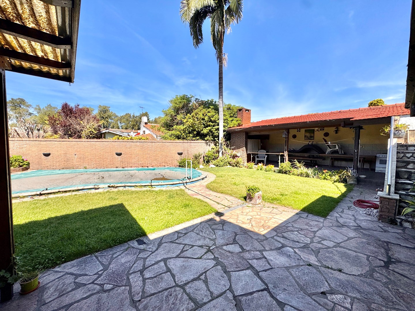 Chalet Tejas Colonial con jardín y piscina – Lomas de Zamora Los Jacarandaes 255, entre Los Robles y Los Castaños – A una cuadra del Parque Municipal de Lomas de Zamora. Encantador chalet de 5 ambientes con estilo colonial, excelente distribución y amplios espacios tanto interiores como exteriores. En planta baja: • Amplio living comedor con pisos de mosaico y hogar a gas. • Cocina comedor totalmente equipada con mesada, bajo mesada y alacena. • Segundo living o posible escritorio / dormitorio adicional. • Dos dormitorios con placard. • Baño completo con receptáculo de bañera. • Segundo baño amplio con ducha. • Lavadero cubierto. • Garaje cubierto para dos vehículos con pisos mosaico y entretecho. • Calefacción por radiadores, Caldera dual.- Exterior: • Amplio jardín parquizado con piscina tipo riñón con filtro, Climatizada. • Quincho semicubierto con parrilla, cocina con mesada, bajo mesada y alacena. • Terraza accesible. Planta alta: • Playroom / escritorio. • Dormitorio adicional con placard. Detalles: • Rejas en todas las aberturas. • Lote de 15m x 22m (sup. total 330m²). • Superficie cubierta 140m². • Zona residencial consolidada, tranquila y muy cercana a espacios verdes.
